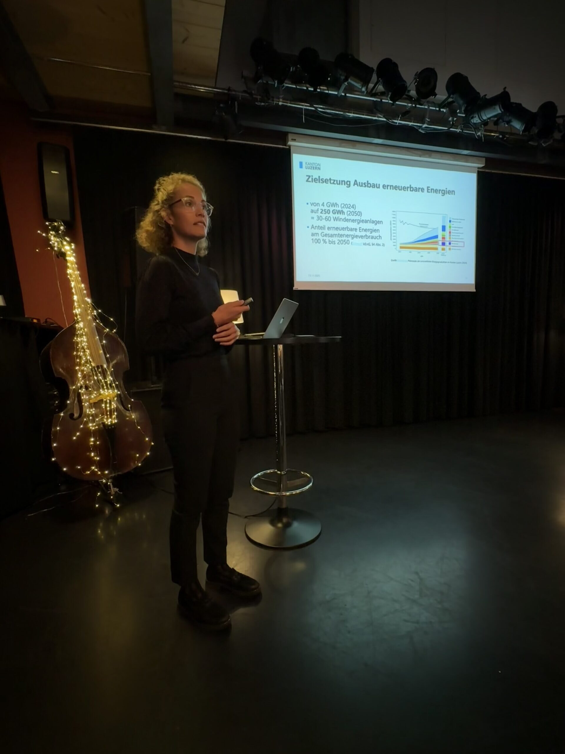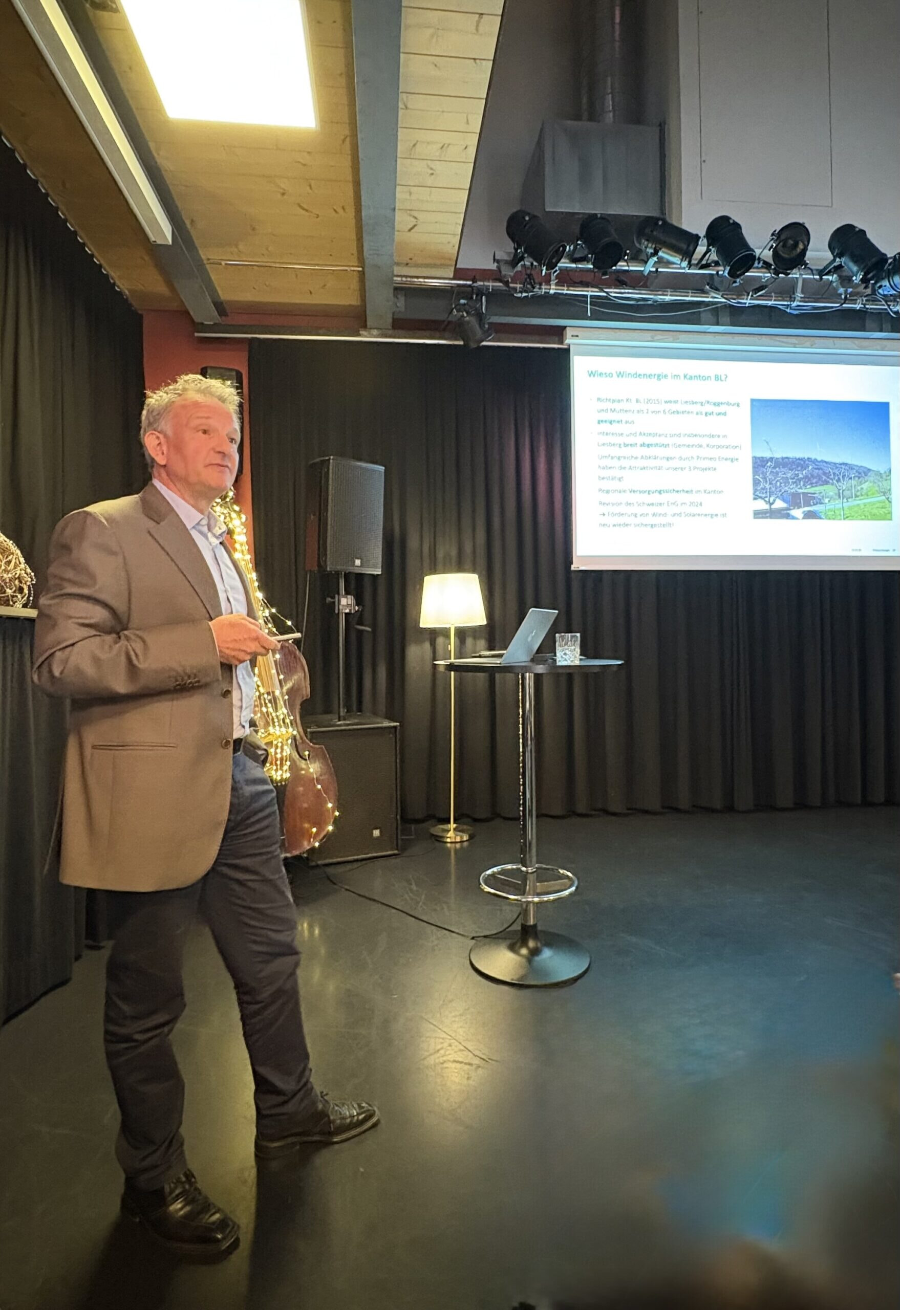 Nach der Begrüssung durch aeebeiderbasel Präsidenten Thomas Tribelhorn eröffnete Judith Schmutz vom Bau-, Umwelt- und Wirtschaftsdepartement Luzern die Diskussion mit einem spannenden Referat zum neuen Luzerner Plangenehmigungsverfahren für Windanlagen. Sie zeigte auf, wie die Prozesse beschleunigt werden können, welche aktuell oft mehrere Jahre dauern, und wie wichtig die frühzeitige Information und Beteiligung der Gemeinden und Bevölkerung ist. Ein spannender Punkt: Die Möglichkeit für Gemeinden, sich finanziell an Windprojekten zu beteiligen. Im Anschluss verdeutlichte Bernhard Brodbeck (Primeo Energie) die Herausforderungen bei der Projektierung von Windparks in der Schweiz anhand von aktuellen Projekten von Primeo Energie. Sein Referat machte klar: Windenergie ist unverzichtbar für die Energiewende, insbesondere in den Wintermonaten, in denen Photovoltaik weniger Ertrag bringt. Wind ergänzt den erfolgreichen Ausbau der Solarenergie und trägt entscheidend zur Versorgungssicherheit bei. Zum Abschluss präsentierte Pascal Pfister (ebl) die Rolle von Batteriespeichersystemen für die notwendige Flexibilität im Stromnetz. Sie sind nicht nur für den Tag-Nacht-Ausgleich wichtig, sondern eröffnen auch neue Geschäftsfelder für Energieunternehmen.